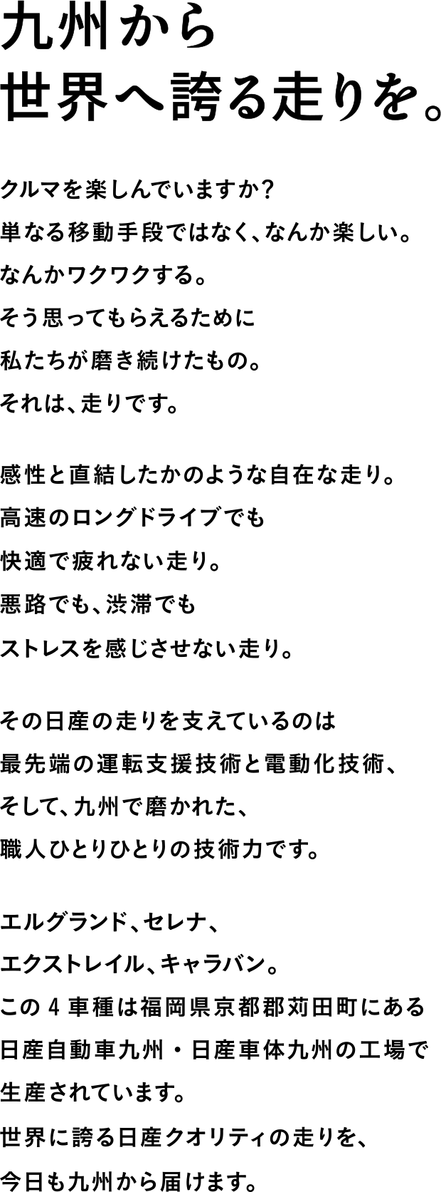 九州から世界へ誇る走りを。|日産