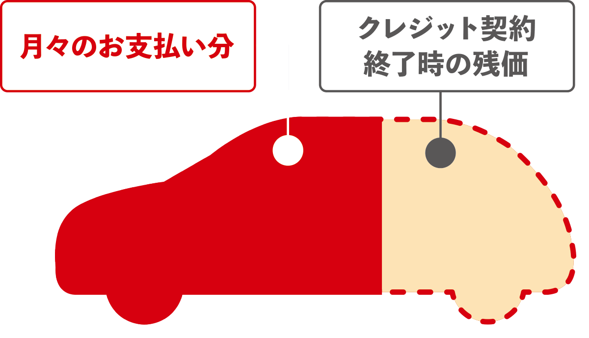 あらかじめ新車の数年先のクルマの残価を設定し、その額を差し引いた分だけ、分割してお支払いいただく月々の負担を軽減するクレジットです。