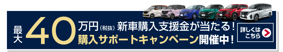 ※2)2025年10月1日以降に対象車種(新車)をおまとめプランでご成約いただくと、エクストレイル:120,000円、セレナ(e-POWER車):110,000円、セレナ(ガソリン車):100,000円、オーラ:90,000円、ノート:70,000円、日産サクラ:70,000円、デイズ:60,000円をキャッシュバックいたします。●お申込みいただきましても審査の結果、おまとめプランをご利用いただけない場合もございます。●詳しくはカーライフアドバイザーにお問い合わせください。