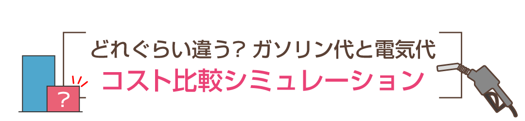 ※シミュレーション内のガソリン代169円/L、電費:9km/kWh走行。電気代は31円/kWhを参考としています。電気料⾦は、ご契約の電⼒会社及びプランによってことなりますので、お住まいの地域の電⼒会社のWebサイトにてご確認ください。