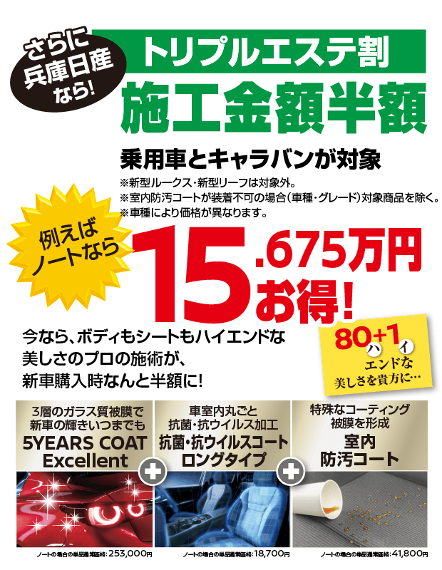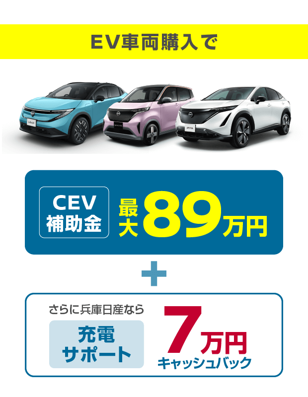 ※2:2025年10月1日以降に対象車種(新車)をおまとめプランでご成約いただくと、エクストレイル:120,000円 セレナ(e-POWER車):110,000円 セレナ(ガソリン車):100,000円 オーラ:90,000円 ノート:70,000円 日産サクラ:70,000円 デイズ:60,000円をキャッシュバックいたします。●お申込みいただきましても審査の結果、おまとめプランをご利用いただけない場合もございます。 ●キャッシュバック対象は、「ご契約者=引落口座名義人」の場合に限ります。口座情報に不備があった場合、キャッシュバック実行ができません。必ずお申込み内容に不備がないようご注意願います。●詳しくはカーライフアドバイザーにお問い合わせください。