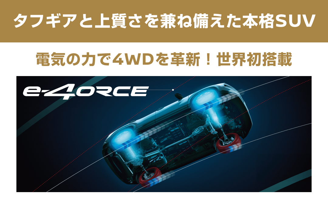 Photo:ROCK CREEK e-4ORCE[2列シート][上記オプション装着車]。ボディカラーはキャニオンベージュ(M)/スーパーブラック 2トーン〈ROCK CREEK専用色〉〈特別塗装色:93,500円〉。