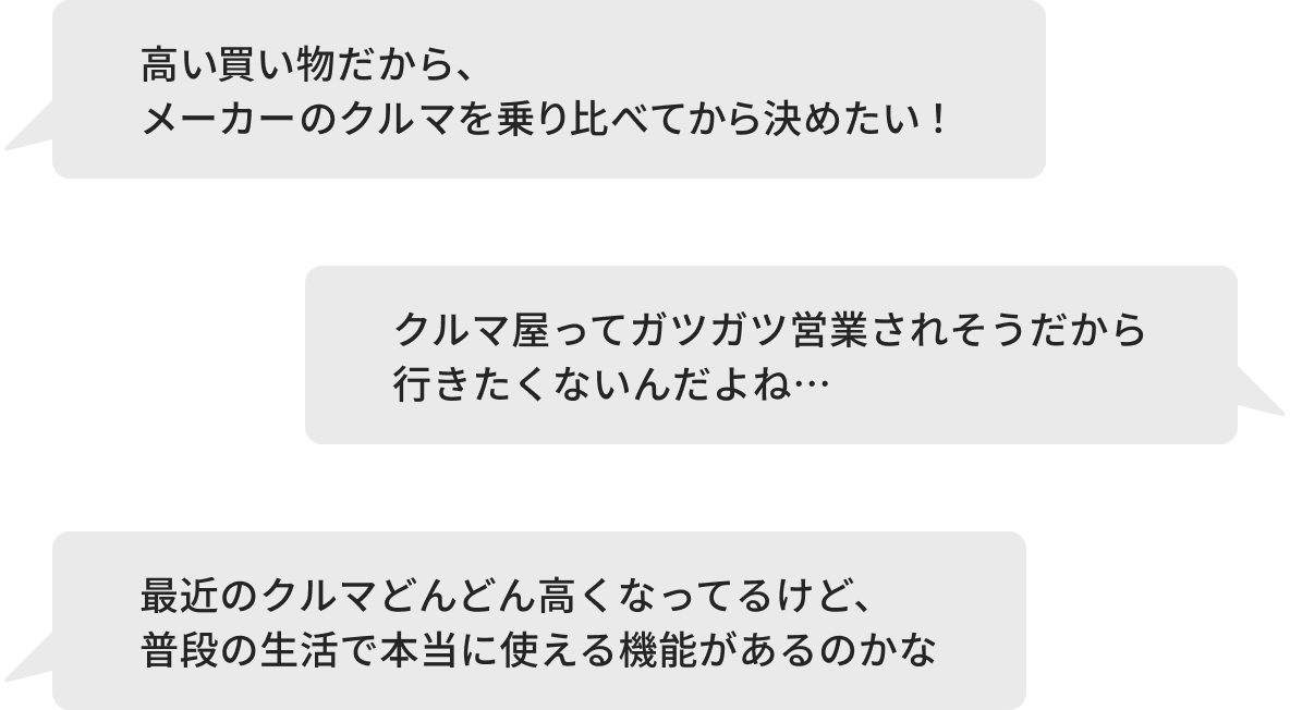 購入検討していたクルマを選びましたが、実際に所有した時の感覚に近い試乗ができたので、購入後のカーライフがイメージしやすかったです。