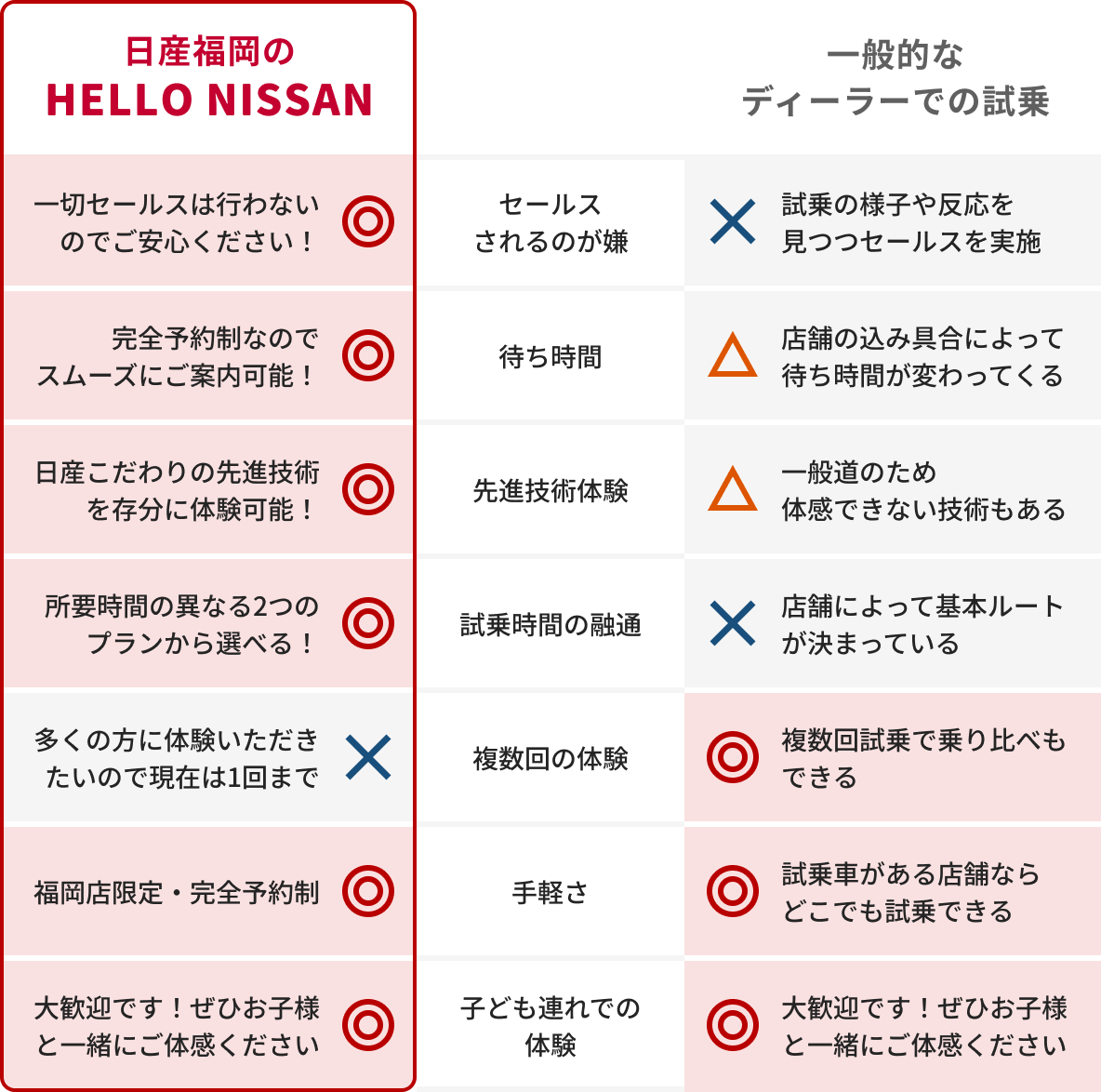 HELLO NISSANでは、お客さまがワクワクできる特別な試乗体験をお届けいたします。
